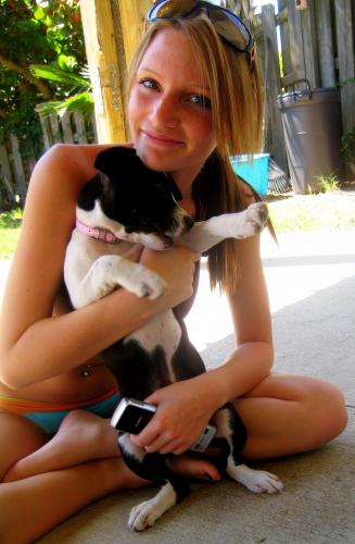 Sitting in the sun reminds me of you. this week is Spring Break heres a picture to show you how my tans coming along.. o yeah and thats my new pitbull Amora. Shes a sweetheart. i wish i could share Spring Break with you. Wish you could teach me some of your taning tricks on how you would get black so FAST :] It's still hard to talk to you because im constantly waiting for a response. Still cant believe your gone untill i look at your earn and realize thats my mom in there. I love you and miss you more then words can say.